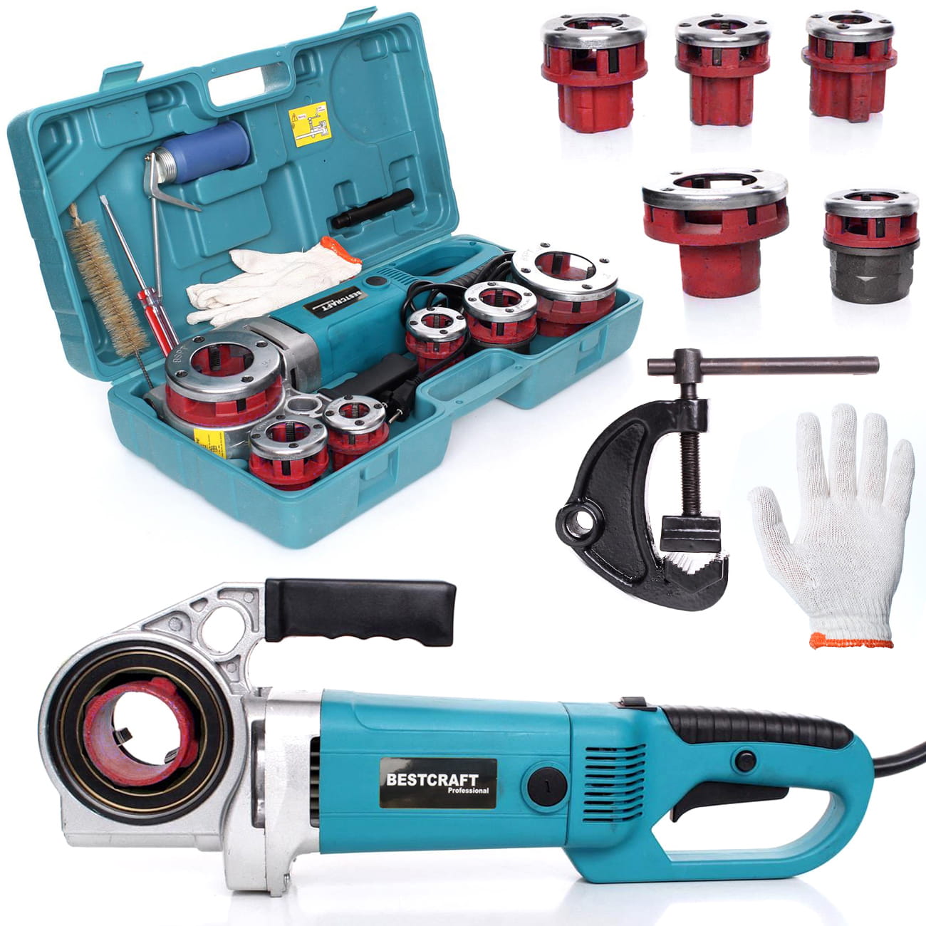 Elektryczna gwintownica do rur o mocy 2300W firmy BESTCRAFT. Gwintownica jest przeznaczona do szybkiego i łatwego wykonywania precyzyjnych i zgodnych z normą gwintów. Sprawdza się podczas prac hydraulicznych jak i w warsztatach stolarskich.